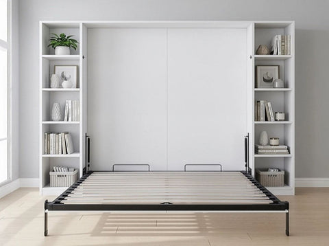 Designed for custom builds, this Murphy bed kit is perfect for turning your spare room, home office, or studio into a multi-purpose space. The durable steel frame with powder-coated finish ensures long-lasting strength, while pneumatic pistons make lifting easy. Features include high-quality slats, automatic folding legs, and a slow-fall safety system for secure use. The included sleek metal door handle adds a premium touch to your cabinetry.
