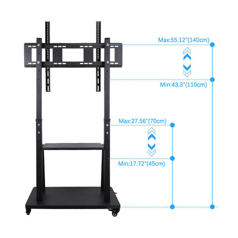Rolling TV Stand 32-100 w/ Adjustable Mount & 2-Tier Shelf