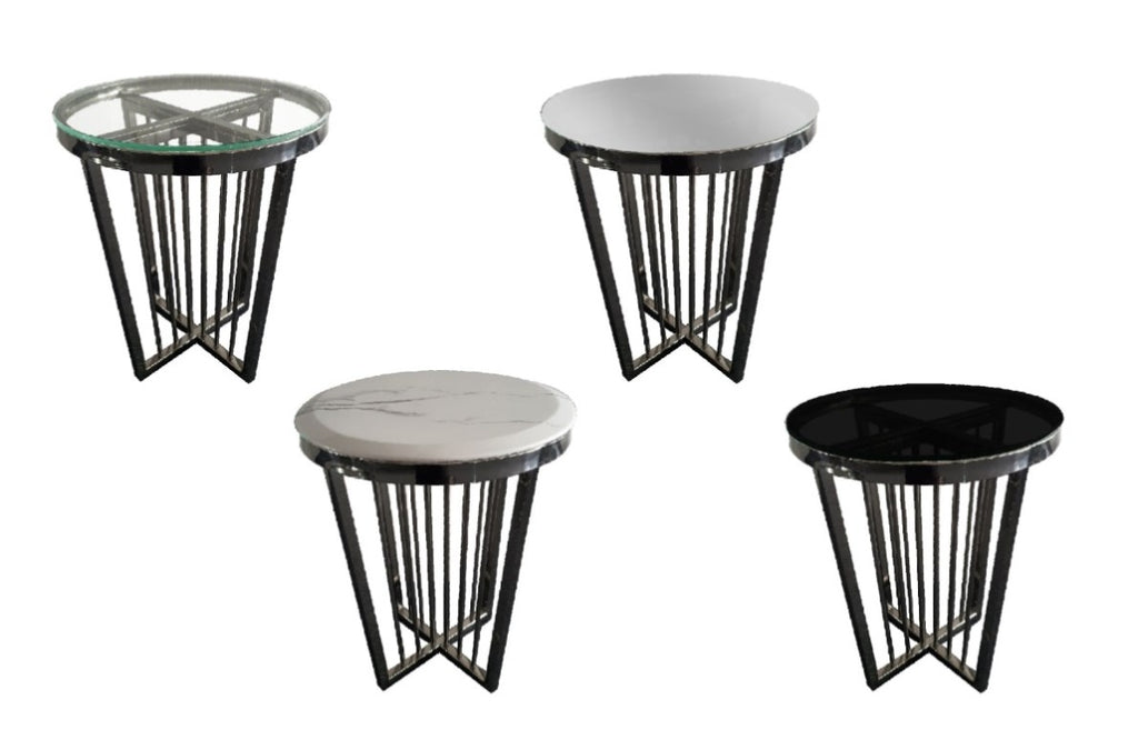 Add a touch of elegance to your living room or bedroom with the Salina Side Table in black. This versatile piece of furniture is available in a metal black frame with a tempered mirror glass top.
