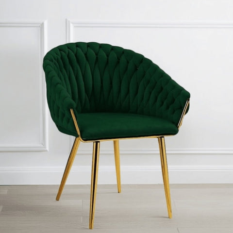 SERENIT Emerald Green Modern Velvet Dining Chairs, Upholstered Living Room Chair with Woven Back V255-SE-GP1801-DC-EGREEN