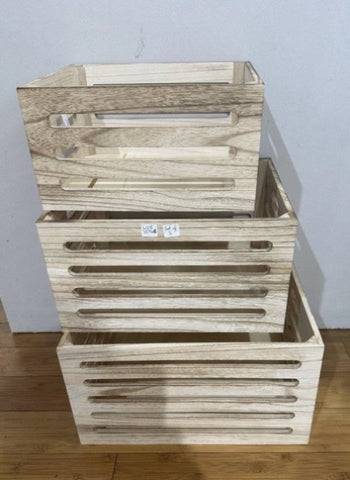 Set 3 Natural Wood Crates 40x22cm V637-WDB35964