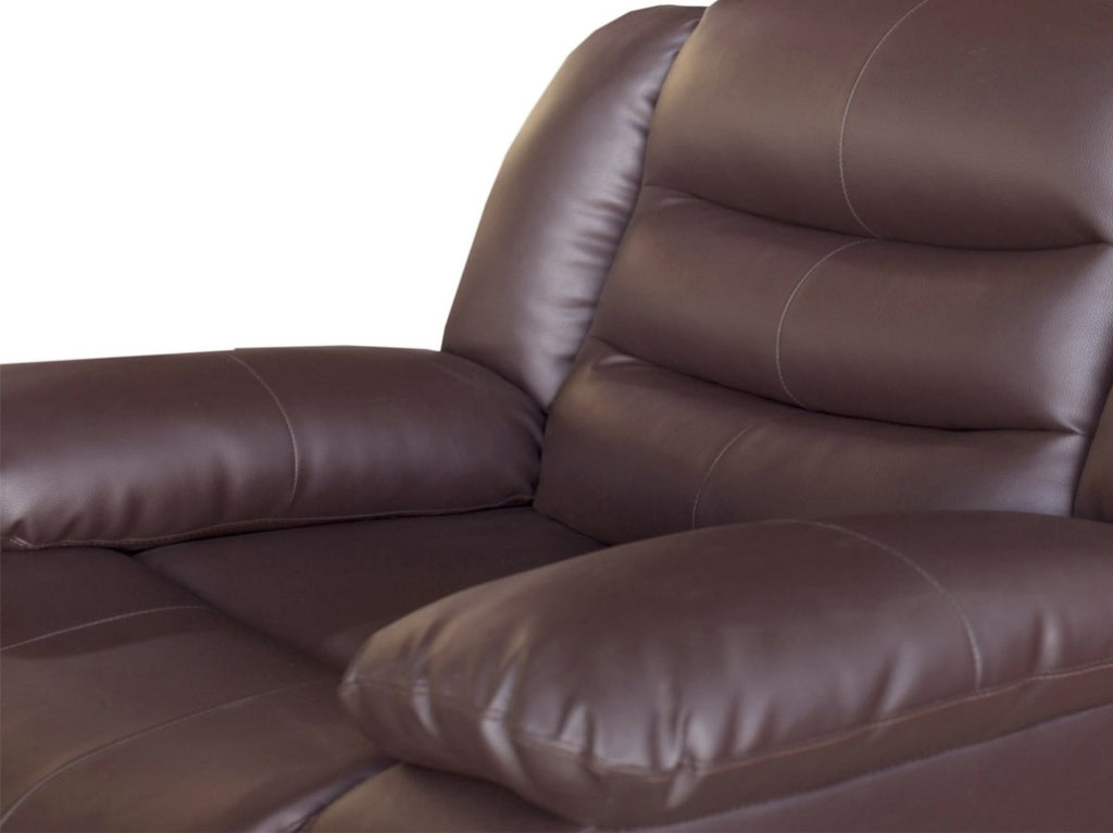 Aesthetic Demeanor in leatherette upholstery and fluffy cushioning of this recliner sofa make it stand out from the crowd. Designed with style and comfort in mind, the spacious armrest and cozy seat give this recliner an inviting look, while the quilted seats with plump cushioning give it a luxurious feel.