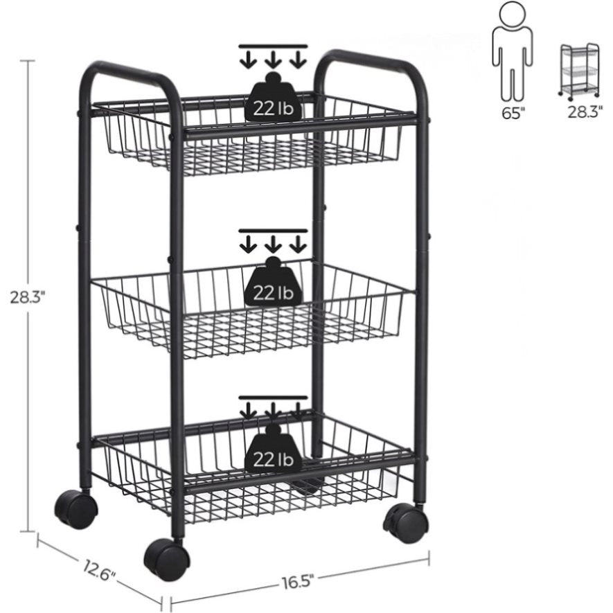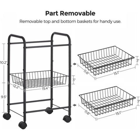 - At Your Fingertips: 3 wire baskets get robust support from the powder-coated steel frame, holding up to 22 lb each; the top and bottom shelves are removable (the middle one is fixed) to bring supplies even closer at hand, like on your counter
