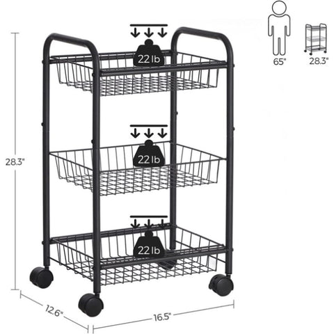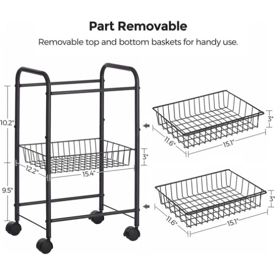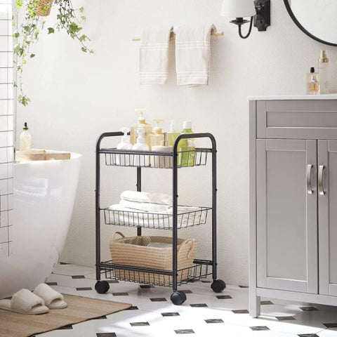 - What You Get: A metal rolling cart that can move with you as your need changes, with 3 storage baskets surrounded by raised edges to keep item secure and curved handles for pulling or pushing it around easily