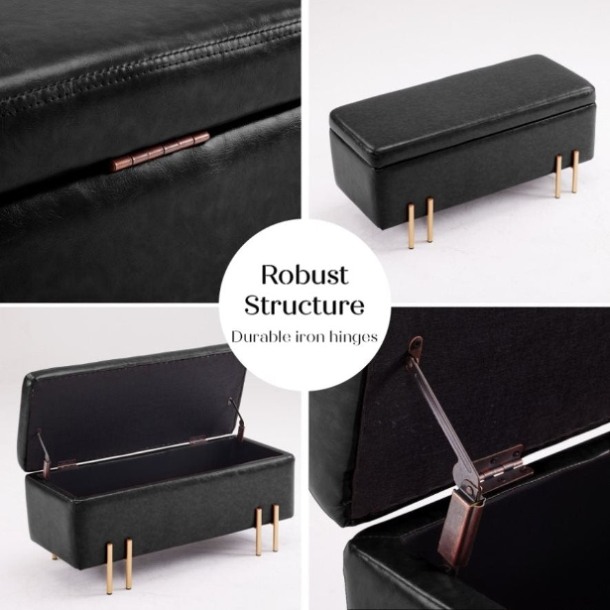Supported by sleek metal legs, the ottoman brings contemporary charm with stability and durability. Lift the lid to reveal ample storage space for blankets, pillows, and more, effortlessly keeping your living area clutter-free.