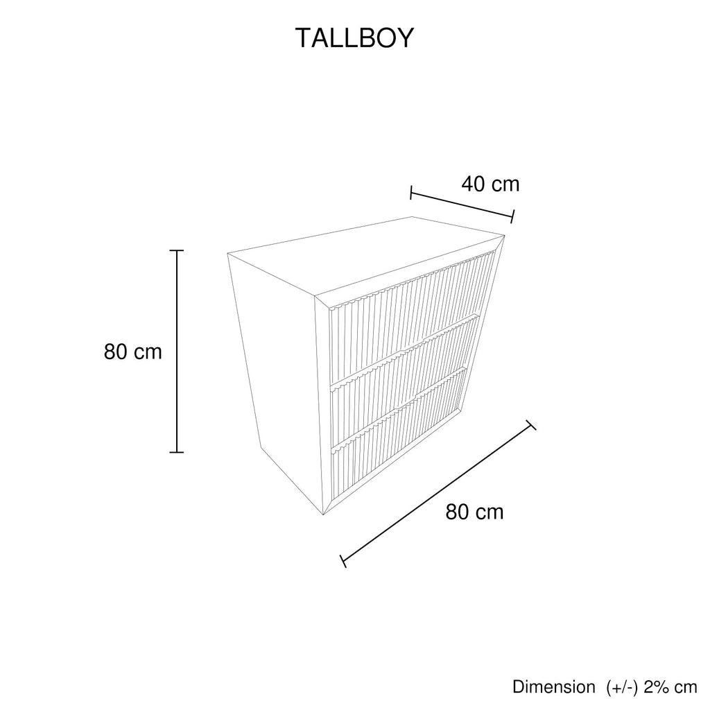 Tallboy MDF Brown Colour Waveform Design Three Drawers V43-TBY-TOBY