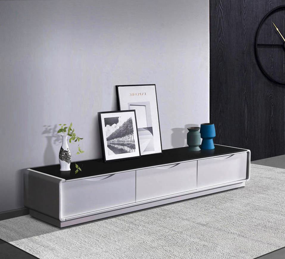 TV Cabinet with 3 Storage Drawers With High Glossy Assembled Entertainment Unit in Black & White V43-TVC-MET-B&W