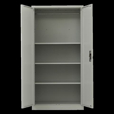 This two-door metal wardrobe made of cold-rolled steel of 0.6mm thickness, painted with special electrostatic paint for maximum resistance to moisture and corrosion.