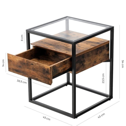VASAGLE Side Table Tempered Glass End Table with Drawer and Shelf Rustic Brown and Black V227-9101402100317