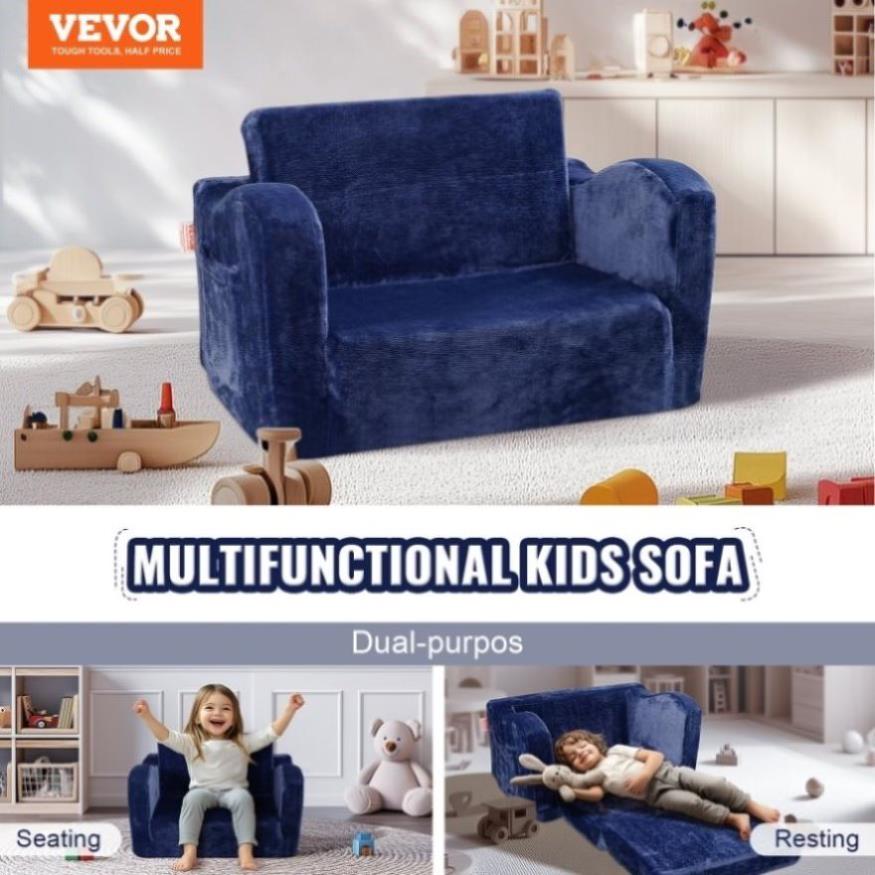 VEVOR Baby Chair Foldable 2-in-1 Comfy Baby Lounger Couch Kids Sofa Blue V952-ETSF6354652INRR5PV0