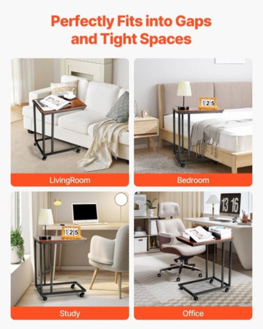 VEVOR C Table, C Shaped Sofa Side Table with Metal Frame Rolling Casters, Portable C Shaped End V952-CZ1JT1CBHB208HKNP001V0