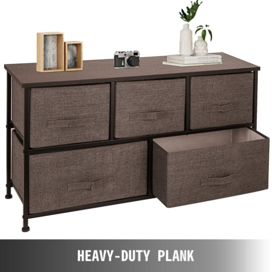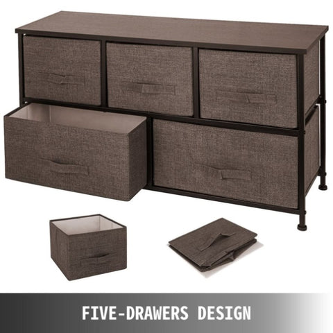 Coffee; Design: 5 Drawers(3 upper drawers + 2 bottom drawers); Style: Simple. Product Size: 39.3x11.8x11.5". The dressers for bedroom applies thick metal tube, painted for anti-rust & with wide feet to keep stability on use.