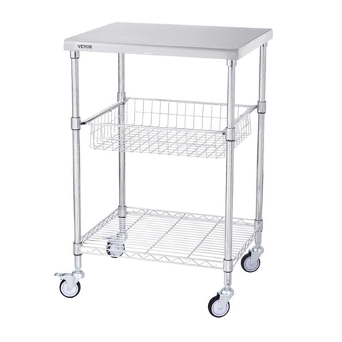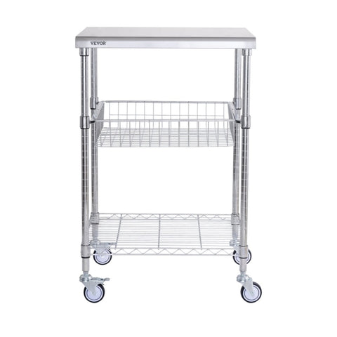 VEVOR Kitchen Utility Cart, 3 Tiers, Wire Rolling Cart with 213kg Capacity, Steel Service Cart on V952-LLCFTCCB20X24IGJ4V0