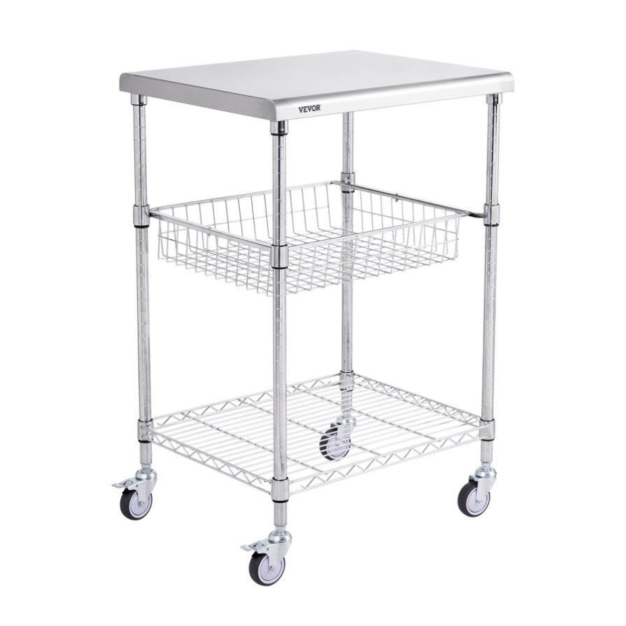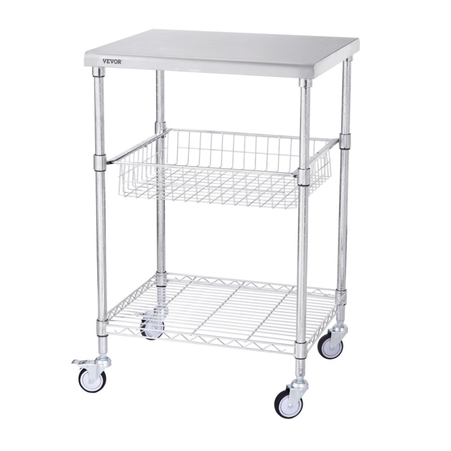 Are you ready to get more out of your kitchen space VEVOR's 3-tier utility cart is made of industrial-strength steel, ensuring durability and resistance to deformation. It can carry up to 470 lbs / 213.2 kg of heavy objects, perfect for storing and transporting large kitchen appliances, heavy machinery, etc. Time to load up and roll!