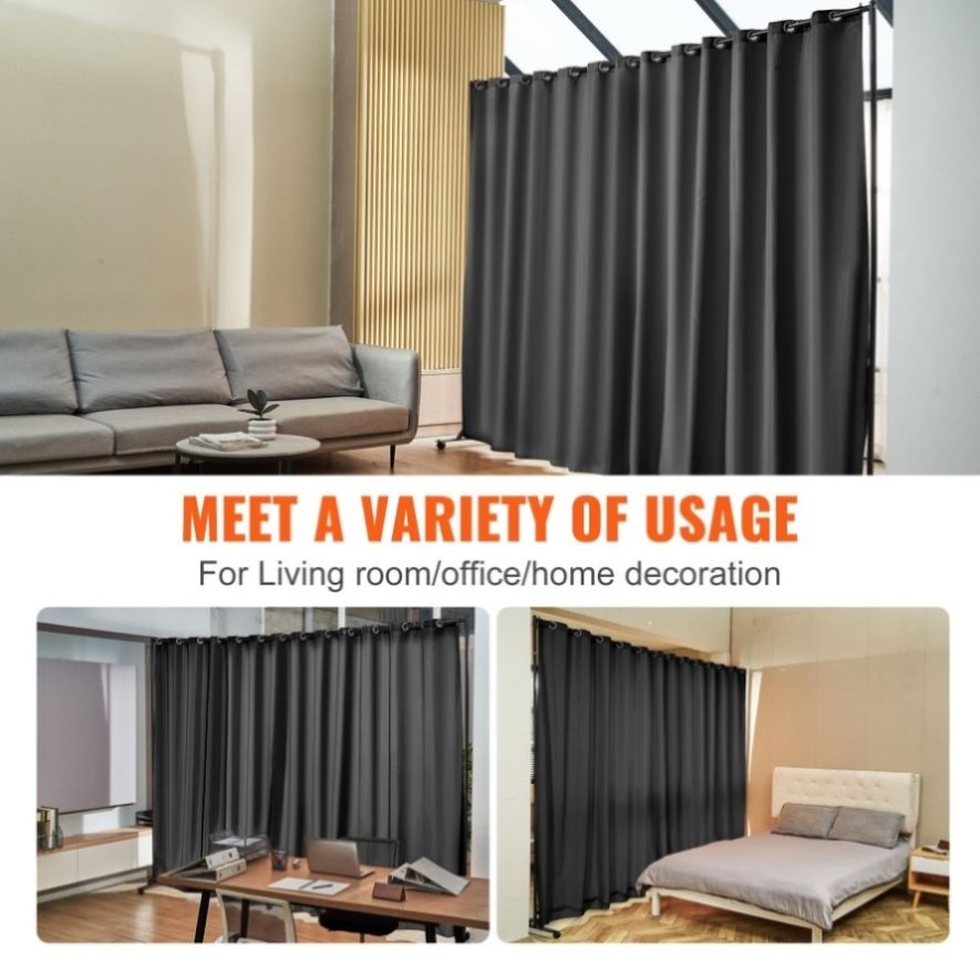 Our room divider curtains are made of 180 g polyester fabric with PA coating. It provides privacy protection, is waterproof, and blocks the sun. The one-piece curtain of 118.5"Lx11.8"Wx94.7" H creates a comfortable private space for you and is durable for long-term use.