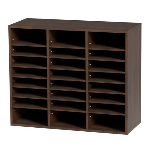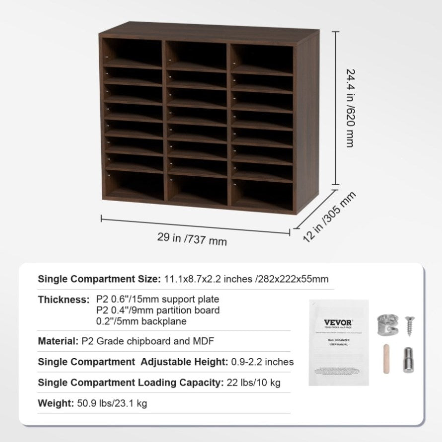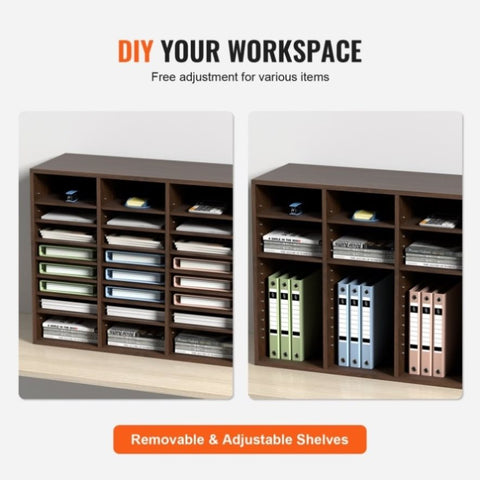 Say goodbye to cluttered desktops with VEVOR 29''x12''x24.4'' wood literature organizer. It has 24 compartments in total, arranged in 8 rows and 3 columns. You'll have ample space to store and organize books, documents, magazines, papers, and other materials. Keep your workspace neat and tidy with ease.
