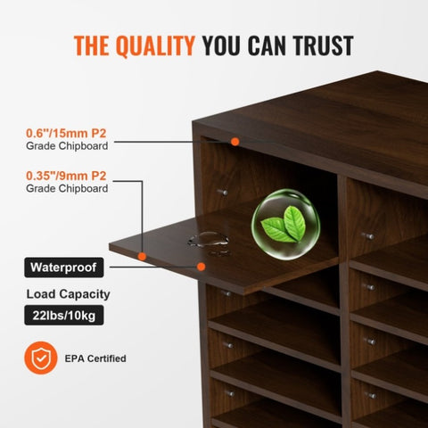 Our wood file sorter is mainly crafted from P2 chipboard that is EPA-certified, you and your family can rest assured to use. Its surface is polished smoothly, making it waterproof, scratch-resistant, and easy to clean, perfect for busy workspaces.