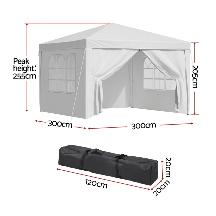 Instahut Gazebo 3x3 Pop Up Marquee Folding Tent Wedding Gazebos Camping Outdoor Canopy White GAZEBO-POP-C-3X3-WH