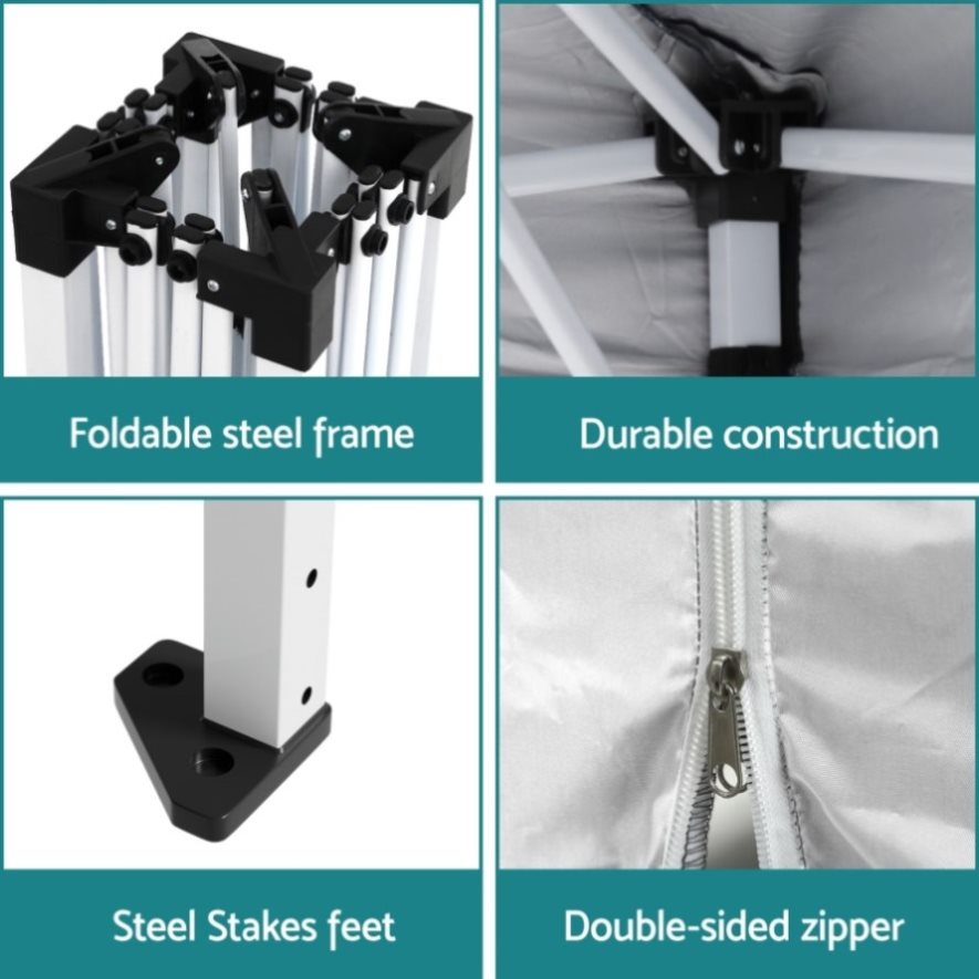 The Instahut Pop Up Gazebo Vendor Tent is the perfect portable item for outdoor adventures, and activities. Featuring a quick and easy setup, durable weather-resistant construction, and 3 adjustable height, this versatile canopy provides reliable shade and protection wherever you need it - from the beach to the backyard. You can enjoy your holiday while the compact folding design with the spacious 3x3m coverage. Crafted with premium materials and built to withstand the elements, the Instahut Pop Up Gazebo Tent is a must-have companion for family camping trips, vendor stalls, school functions.