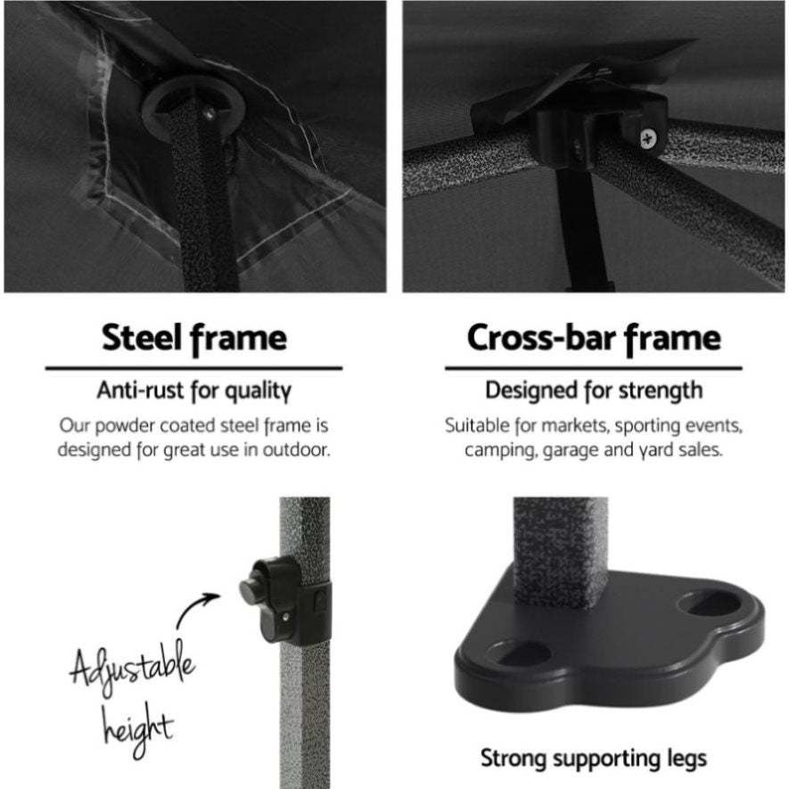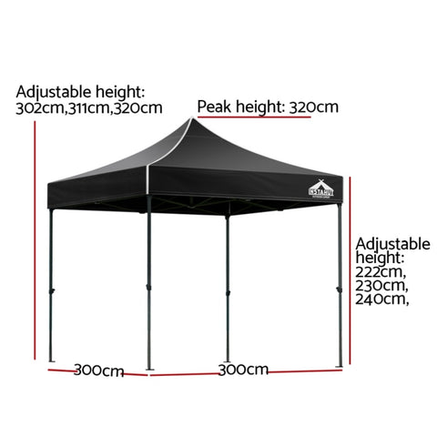 Instahut Gazebo Pop Up Marquee 3x3m Folding Tent Wedding Outdoor Camping Canopy Gazebos Shade Black GAZEBO-T-3X3-F-BK