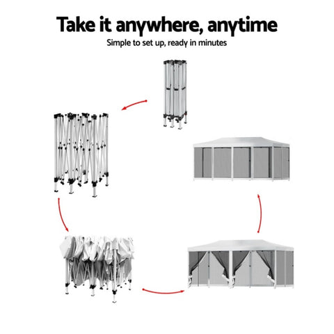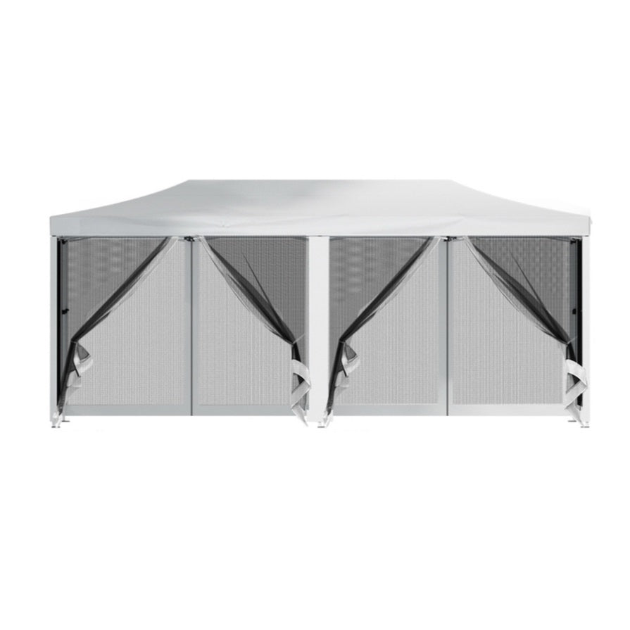 Instahut Gazebo Pop Up Marquee 3x6m Wedding Party Outdoor Camping Tent Canopy Shade Mesh Wall White GAZEBO-POP-M-FG-3X6-WH
