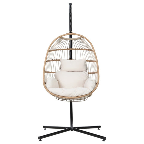 Gardeon Outdoor Egg Swing Chair Wicker Rope Furniture Pod Stand Foldable Yellow HM-EGG-ROPE-XD-YE