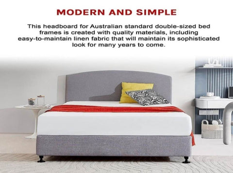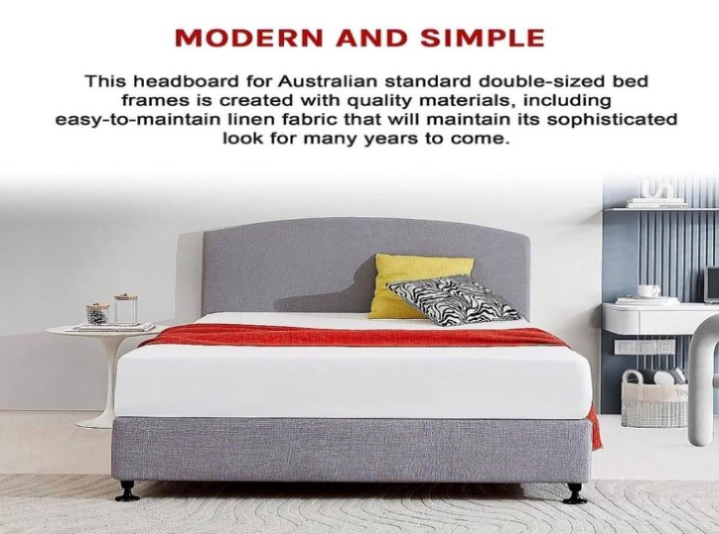 This headboard for Australian standard double-sized bed frames is created with quality materials, including easy-to-maintain linen fabric that will maintain its sophisticated look for many years to come. This particular model comes with simple design that will blend seamlessly with a wide variety of bed frames and other bedroom furniture.
