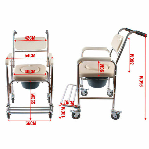 Aluminum Bedside Commode Chair 200kg Mobile Shower Toilet Wheelchair V178-66964