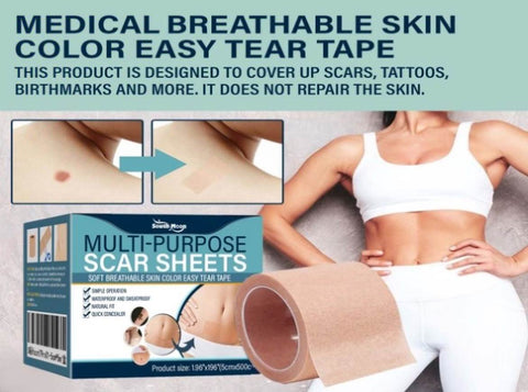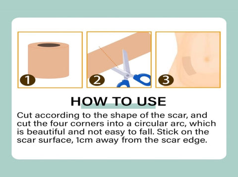 Stick to the scar surface, 1cm away from the edge of the scar. And can conceal the skin.
