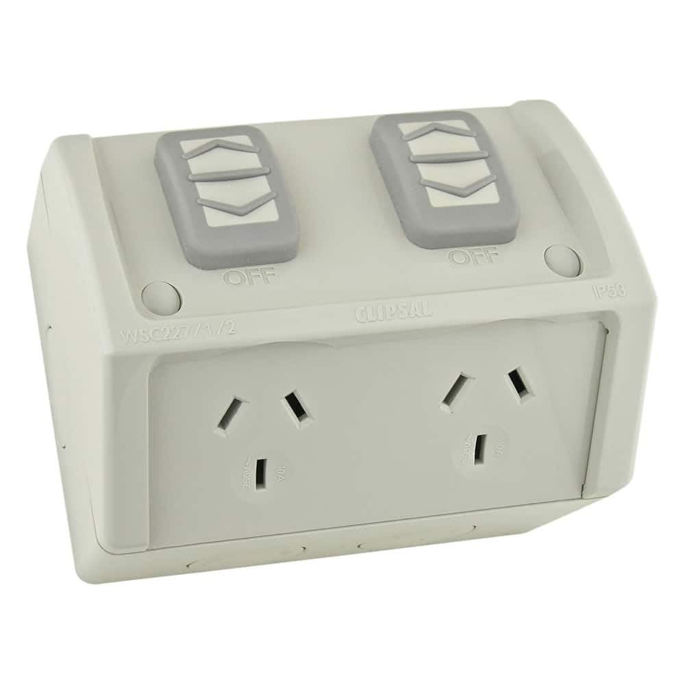 Clipsal Weathershield 10A 250V Twin Switch Socket Outlet is made of high-quality plastic. 1 x 20 mm Screwed entry, 2 x 20 mm flash out entries. Easy access to screw for quick termination of cable, quick and easy to install. Control type: sliding type, ON/OFF button, Number of gangs: 2 gangs, Pin number: 3, Number of power socket outlets: 2, Fixing mode: by screws.