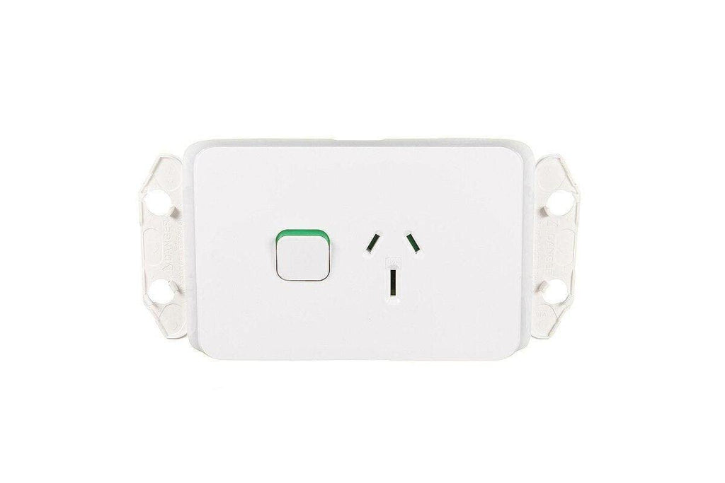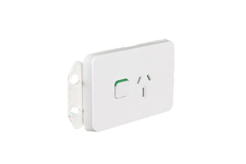 Clipsal by schneider electric single switch socket horizontal has a Grid Plate with innovative protective flaps which help prevent screw access after installation (by a qualified electrician) which means skins can be changed safely at any time. Protective flaps help prevent direct access to the screws after installation.