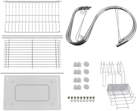 It is crafted with an attractive chrome finish, the dish rack is resistant to rust, safe and steady. Moreover, it is included an anti-Slip and Marring silicone coated feet protectors to keep the rack stone steady.