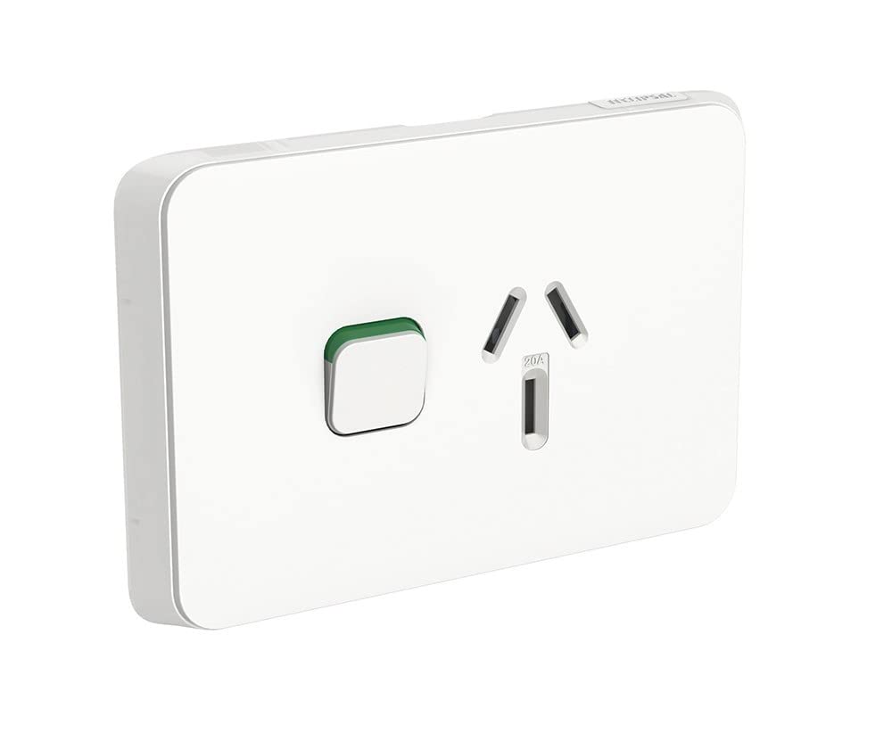 Clipsal by Schneider Electric 20 Amp iconic series single horizontal powerpoint feature grids with innovative protective flaps, which help prevent screw access after installation, allowing skins to be changed safely at any time. All sockets come with internal shutters providing additional protection. Tapping pad for spirit level. Green indicator so you know when it is switched on. Length Packaging: 120, Height Packaging: 37, Depth Packaging: 78, Width: 78.000000, Height: 37.000000, Depth: 120.000000, Current Rating: 20 Amps, Colour: White, Colour Code: VW, Colour Tint: Temporary tint, Orientation: Horizontal, Type: Powerpoint (type), Sockets: Single.