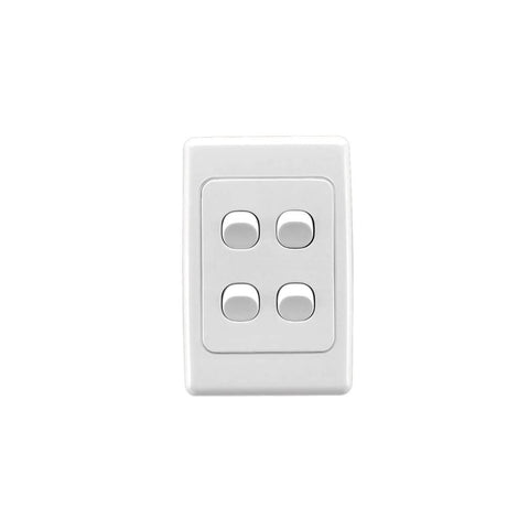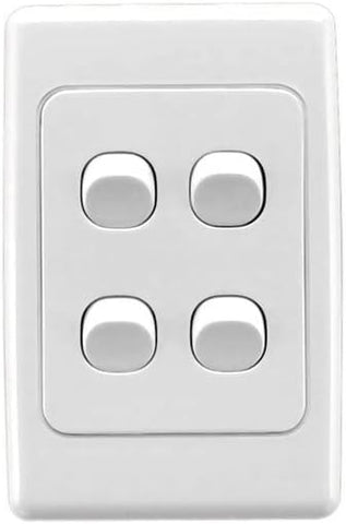 The SWITCH 4 GANG VERTICAL 10A 250V has a part number of 2034VA-WE, and is part of the 2000 Series range of products by Clipsal by Schneider Electric. Measuring at 24MM tall, 76MM wide, 116MM deep, and has a weight of 0.11KG. The barcode of this product is 9311554047535.