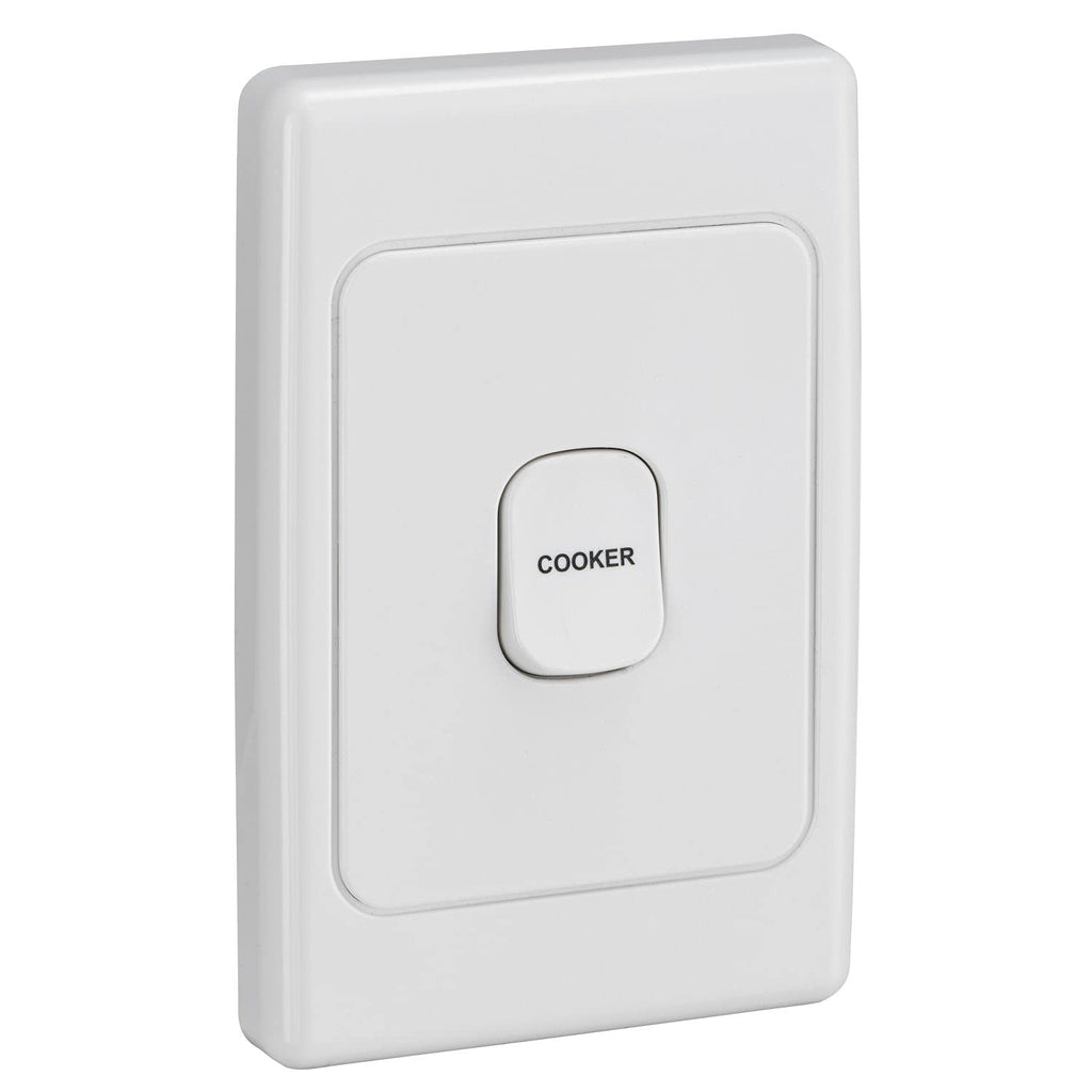 Brand: Included Components 1 x Clipsal 2000 Series 250V 45A 1 Gang Single Pole Vertical d Cooker Switch, White Electric