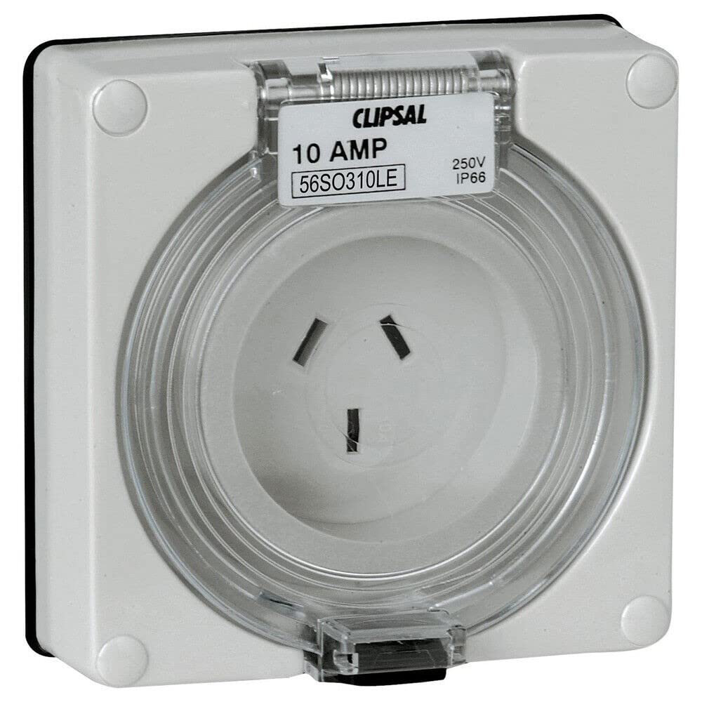 Clipsal 250V 10A 3 Flat Pin Less Enclosure Surface Socket Outlet is Perfect for commercial and industrial use. Made with high quality materials. Comes with long time durability. Hose proof and dust resistant flaps with automatic snap catch latches. PVC solvent bonding compatibility. Quick, easy and safe wiring. Comes in Grey Color.