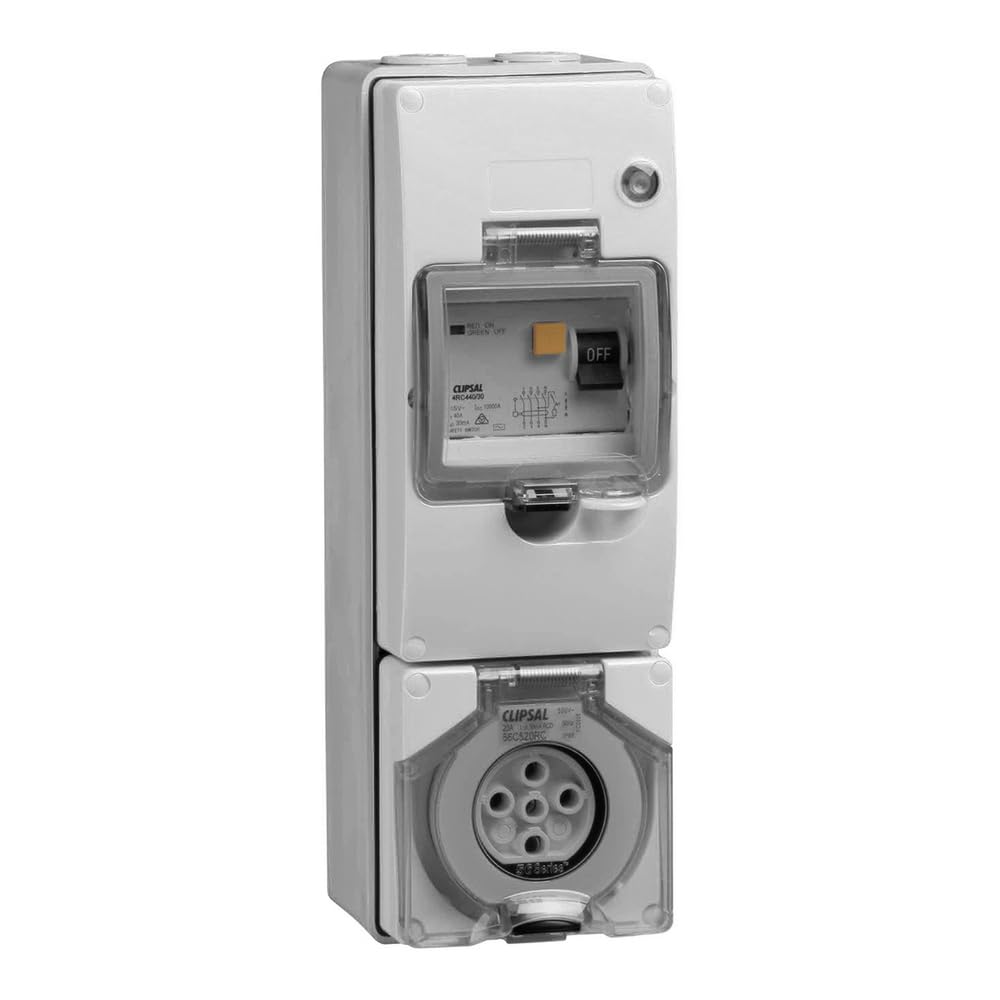 56 Series 500V 20A 5 Pin RCD Protected IP66 Switched Socket Outlet, Grey V1202-V1-CLI56C520RCGY