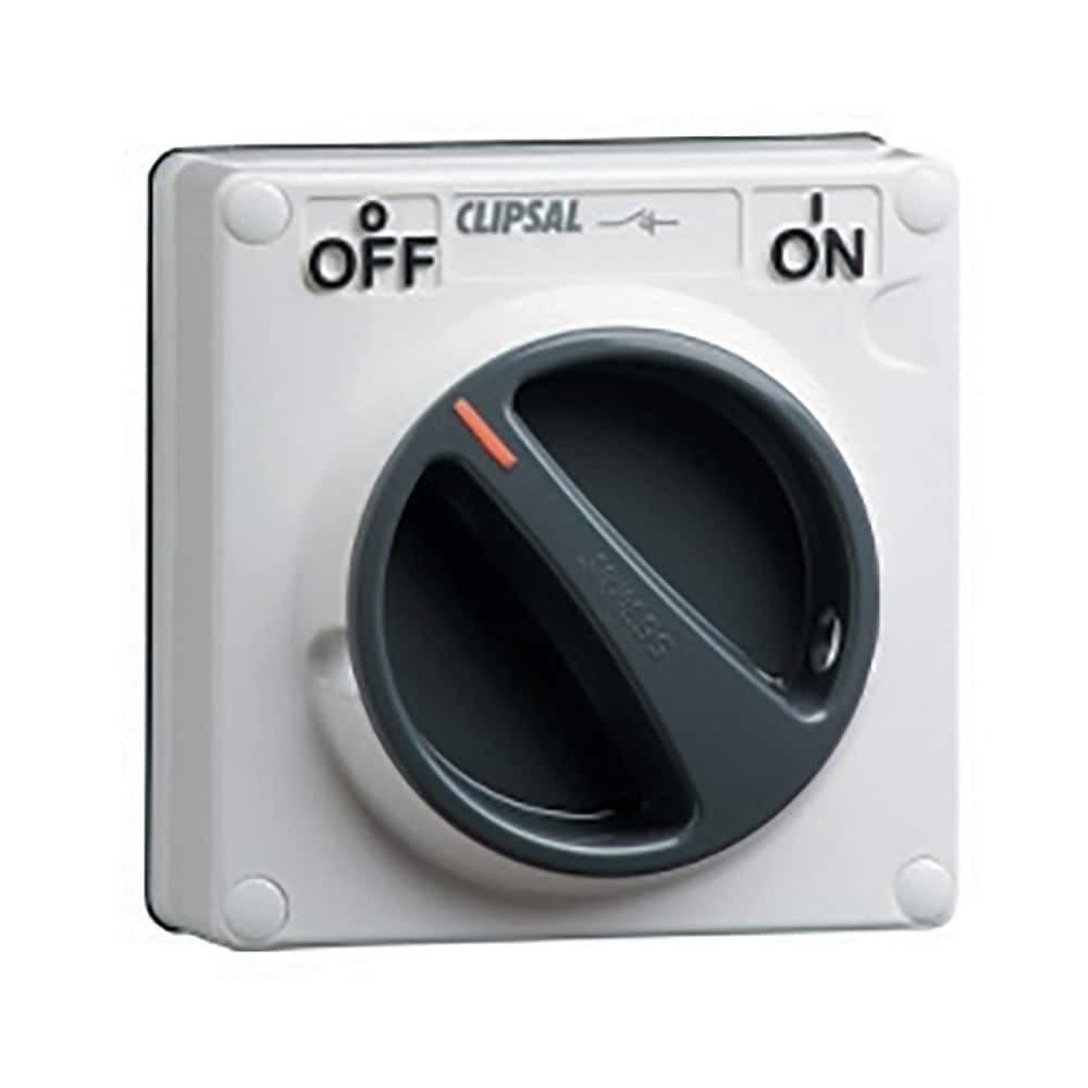 Clipsal 56 Series 500V 20A 1 Gang 3 Pole Less Enclosure Surface Switch is made from polycarbonate material. It ensures everlasting reliability and lasting value. It is easy and convenient to use. An improved design that is easy to handle. Specifications: Range of product: Series 56, Range: Clipsal - 56 Series, Product or component type: switch, Device application: control, Market segment: utility, small commercial industry, Sustainable offer status: Green Premium product, Device presentation: basic element with full cover plate, Switch function: 3-pole, Control type: rotary knob, Number of poles: 3, Device mounting: surface, Local signalling: without, rated operational voltage: 500 V AC 50 Hz, Rated current: 20 A, Marking: ON-OFF, Ambient air temperature for operation: -25-75°C, IP degree of protection: IP66 conforming to AS 60529, Standards: AS/NZS 3133, REACh Regulation: Reference contains Substances of Very High Concern above the threshold, EU RoHS Directive: Compliant, Mercury free: Yes, RoHS exemption information: Yes, China RoHS Regulation: Product out of China RoHS scope. Substance declaration for your information, Environmental Disclosure: ENVPEP120809EN.