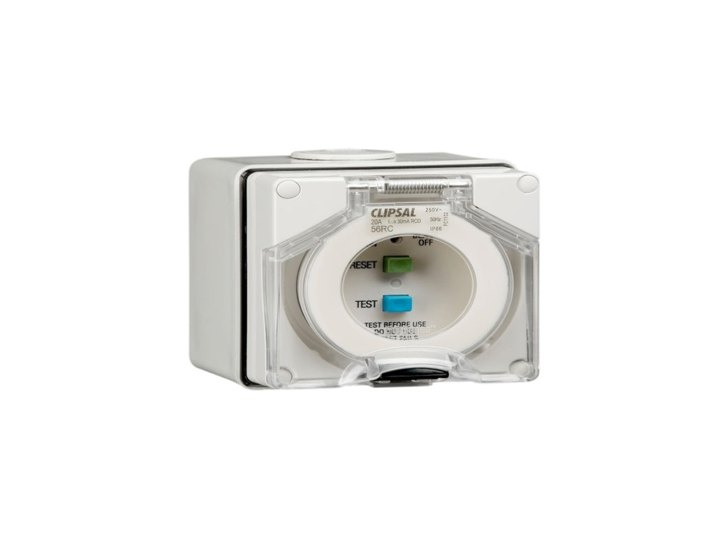 56RC-GY 56 Series 20A 250V 30mA IP56 2 Pole Residual Current Circuit Breaker, Grey V1202-V1-CLI56RCGY