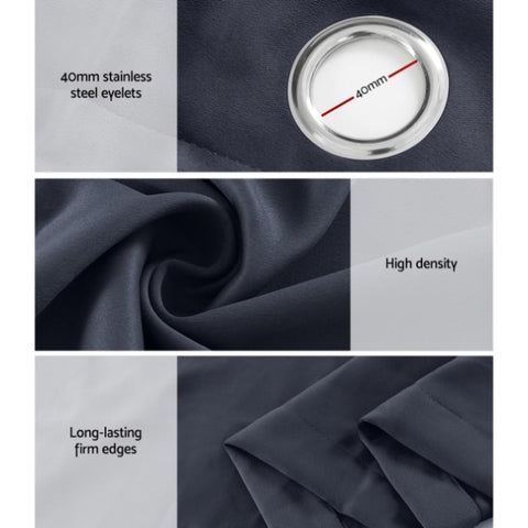 Artiss 2X Blockout Curtains Eyelet 300x230cm Charcoal BC-MATT-300X230-CH