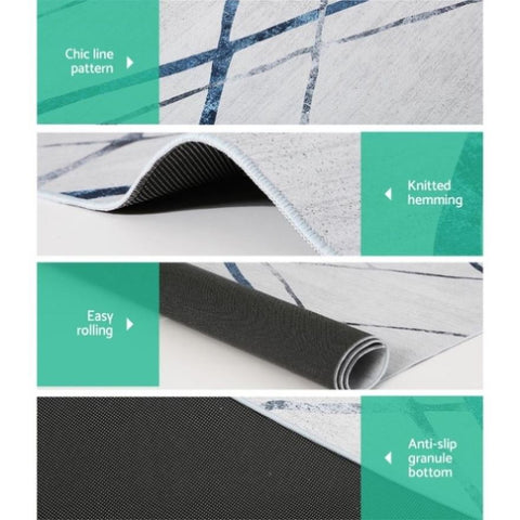 Artiss Rug 200x290cm Area Rug Washable Mat Large Carpet Soft Short Pile Jaca FLR-4353-200X290-BL-GR