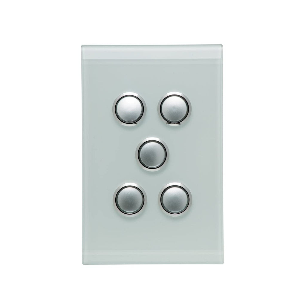 C2000 Series 250V 16AX/20A 5 Gang LED Indicator Switch Push Button, Ocean Mist V1202-V1-CLI4065PBLOM