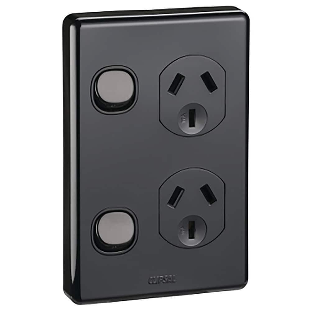 Clipsal C2000 Series Classic 250V 10A Vertical Twin Switch Socket Outlet is made from high quality plastic material. Socket for vertical installations. Low profile design clip-on cover. Four corner mounting points. Combination switch/wall socket outlet. Specifications: Type of fastening: Mounting with screw, Mounting method: Flush mounted (plaster), Material: Plastic, Material quality: Thermoplastic, Surface protection: Other, Surface finishing: Brilliant, Colour: Black, Transparent: No, Nominal voltage: 250 V, over voltage protection: No, Fault current protection: No with miniature fuse: No, Number of active Pins (flat): 2, Width of device: 76 mm, Height of device: 116 mm, : , Depth of device: 28 mm with built-in USB power supply: No with function lighting: No, Cover: Full cover plate, Imprint/indication: without imprint, Label space/information surface: No, Special power supply: No special power supply, Number of units: 2, Model: C2000 series, Lockable: No, Frequency: 50, Nominal current: 10, Number of socket outlets switchable: 2 with on/off switch: Yes with orientation lighting: No.