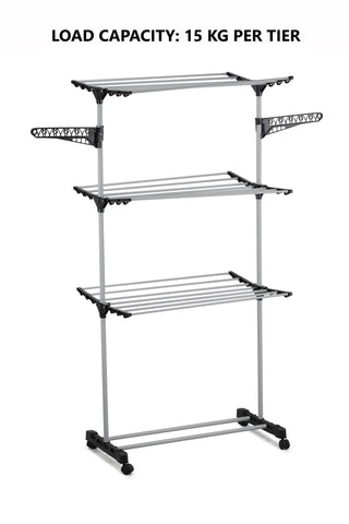 CARLA HOME Folding 3 Tier Clothes Laundry Drying Rack with Stainless Steel Tubes for Indoor & LSB-36029