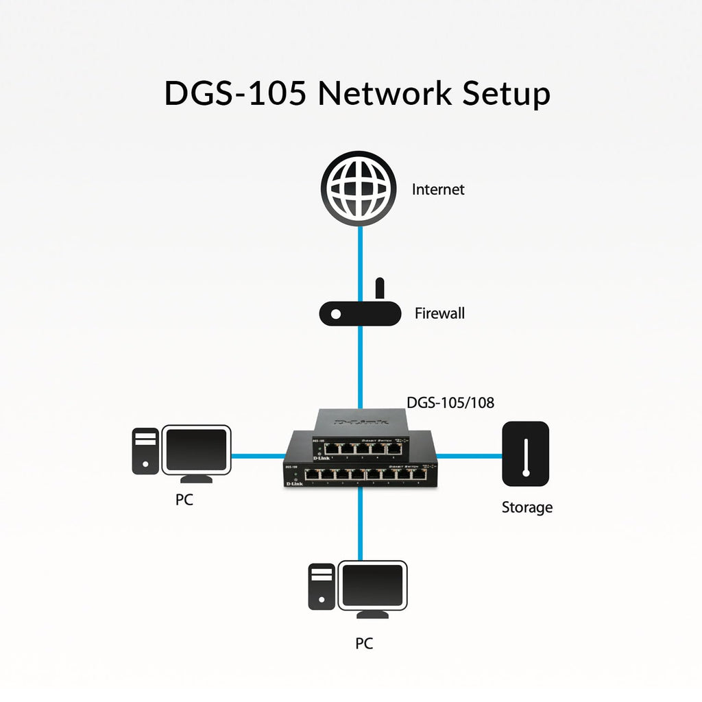 - Superior Network Performance - D-Link DGS-105 5-Port Gigabit Desktop Switch ensures optimal network performance with its non-blocking architecture, allowing all connected devices to operate at full speed simultaneously. This unmanaged switch is perfect for users who demand high-quality and reliable network connectivity for tasks such as streaming, online gaming, and large file transfers.