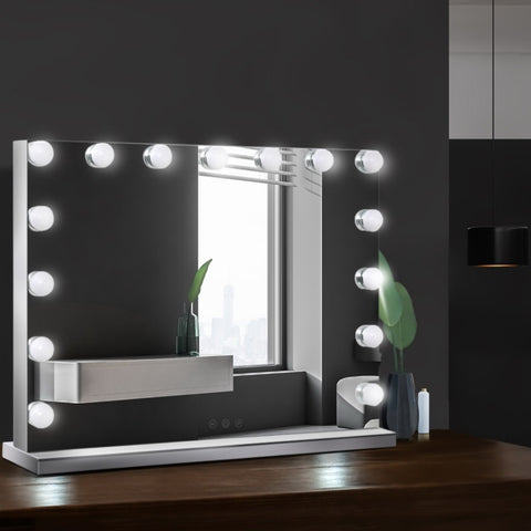 Get the star treatment with our gorgeous Embellir Makeup Mirror. Framed with 15 LED bulbs, this mirror really lights up your countenance during your daily makeup regimen. The aluminium frame is sturdy and lightweight and adds a glistening touch of glamour to the entire mirror. The frame sits on an equally smooth powder-coated MDF base for good stability and durability. Even more wonderful is that the LED light can be easily adjusted for brightness and colour temperature (choice of cool white, daylight and warm yellow). Turn your bedroom or bathroom into a celebrity set overnight with our makeup mirror. And enjoy beauty in all its illuminated brilliance.