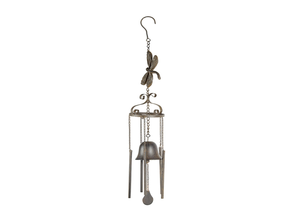 Hanging Cast-Iron Dragonfly Chimes w Bell 73cm V637-06885DRG
