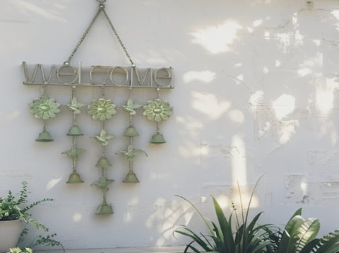 Hanging 'Welcome' Sign w Birds Bells 85cm V637-24858WEL