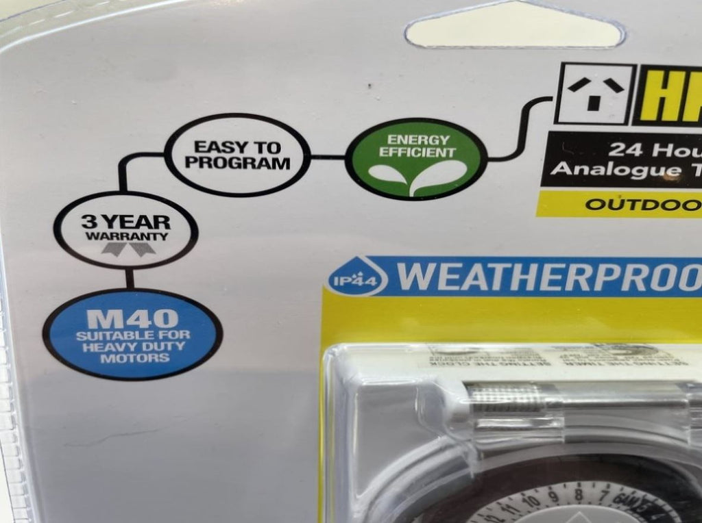 Hpm 24Hr Heavy Duty IP44 Outdoor Timer is easy set push tab operation also m40 motor rating for heavy duty appliances. Perfectly suited for those outdoor applications as well as this is easy to program. It is energy efficient.