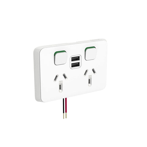 Clipsal Iconic 250V 10A Horizontal Mount Dual USB Charger Twin Switched Socket is made from high quality material. USB chargers have a patented rotatable head for easy reorientation. Reduces the output current to help prevent overheating and minimising charge times. USB charging mechanisms provide a robust mechanism for wall plate USB charging applications. Capable of withstanding persistent short circuit conditions, making them rugged, robust and reliable.
